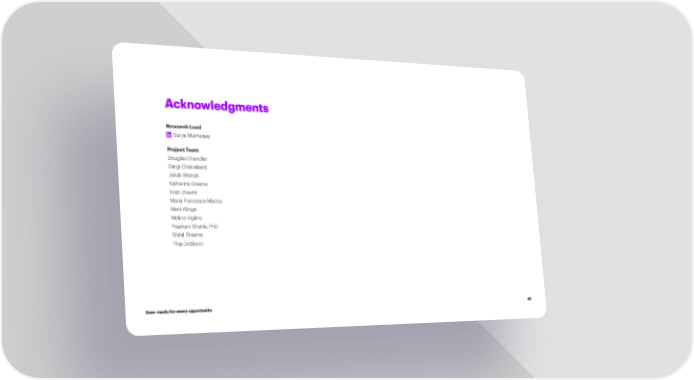 Acknowledgments Research Lead Surya Mukherjee Project Team Douglas Chandler Gargi Chakrabarti Jakub Wiatrak Katherine Greene Krish Jhaveri Maria Francesca Mecca Mark Klinge Melina Viglino Prashant Shukla, PhD Shital Sharma Thijs Deblaere Ever–ready for every opportunity 43