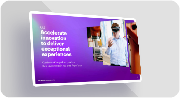 03 Accelerate innovation to deliver exceptional experiences Continuum Competitors prioritize their investments in one area: Experience. Ever–ready for every opportunity 28