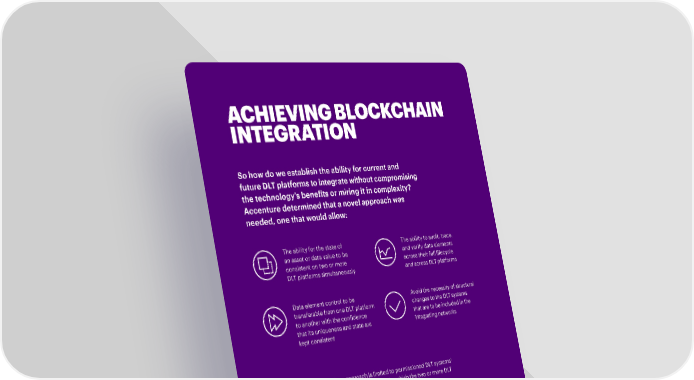 ACHIEVING BLOCKCHAIN INTEGRATION So how do we establish the ability for current and future DLT platforms to integrate without compromising the technology’s bene昀椀ts or miring it in complexity? Accenture determined that a novel approach was needed, one that would allow: The ability for the state of The ability to audit, trace, an asset or data value to be and verify data elements consistent on two or more across their full lifecycle DLT platforms simultaneously and across DLT platforms Data element control to be Avoid the necessity of structural transferable from one DLT platform changes to the DLT systems to another with the con昀椀dence that are to be included in the that its uniqueness and state are integrating networks kept consistent 1 For context, the scope of our approach is limited to permissioned DLT systems with the necessary governance and policy/rules by which the two or more DLT systems participants will work together. 1 Accenture has developed a derivative approach that could be applied for public/permission-less systems, but that is not the focus of this POV nor the vast majority of our client work. 8 CONNECTING ECOSYSTEMS: BLOCKCHAIN INTEGRATION
