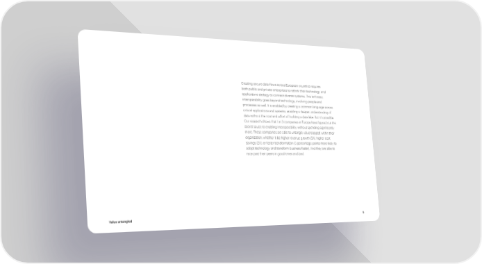 Creating secure data flows across European countries requires both public and private enterprises to rethink their technology and applications strategy to connect diverse systems. This isn’t easy; interoperability goes beyond technology, involving people and processes as well. It is enabled by creating a common language across critical applications and systems, enabling a deeper understanding of data without the cost and effort of building a data lake. But it’s possible. Our research shows that 1 in 3 companies in Europe have figured out the secret sauce to enabling interoperability, without spending significantly more. These companies are able to untangle value trapped within their organization, whether it be higher revenue growth (5X), higher cost savings (2X), or faster transformation (5 percentage points more likely to adopt technology and transform business faster). And they are able to race past their peers in good times and bad. Value untangled 5